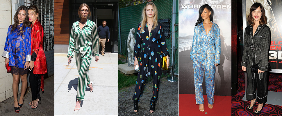印著童趣花樣的睡衣該怎麼穿出場?Cara Delevingne搭配了露指跟鞋,Liv Tyler則是選擇黑色一字跟鞋,照樣時髦的很,還有種東方風情。