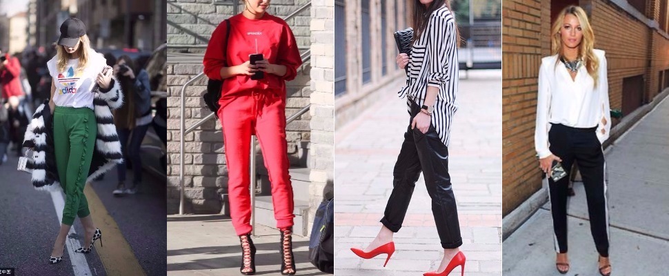 像這樣末端縮口外加上端有抽繩的棉褲,一向是和球鞋跟運動裝束連在一起~但有了運動時尚風潮熱度加持,運動褲搭高跟鞋,已經不是突兀而是時尚,運動縮口褲也趕上了這波流行,想要跟隨時尚的腳步,快點來看看怎麼搭吧!圖片/pinterest、視覺中國