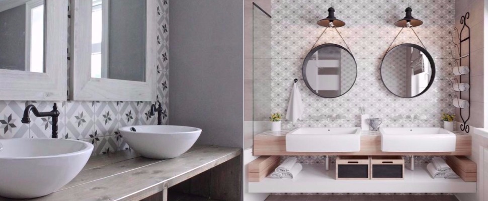 如果覺得貼整面牆也是個挑戰的話,不如就貼在洗手台上面吧!記得也可以選搭一個漂亮的復古鏡框,看起來更加有異國風情~顏色的選擇上小編覺得藍色是個不錯的選項,看起來很精緻有種美麗的陶瓷感~