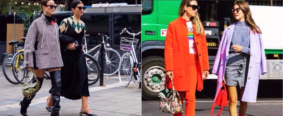 真的是這季的流行無誤,從亞洲到歐洲都是,在北歐這種雪國,一件時髦的大衣就是生活必需品!搭上過膝長靴即使在零下也可以保暖又時尚,(右)復古洋裝外罩格紋大衣,再加上一雙粉紅色襪子來點綴,超級顯眼。