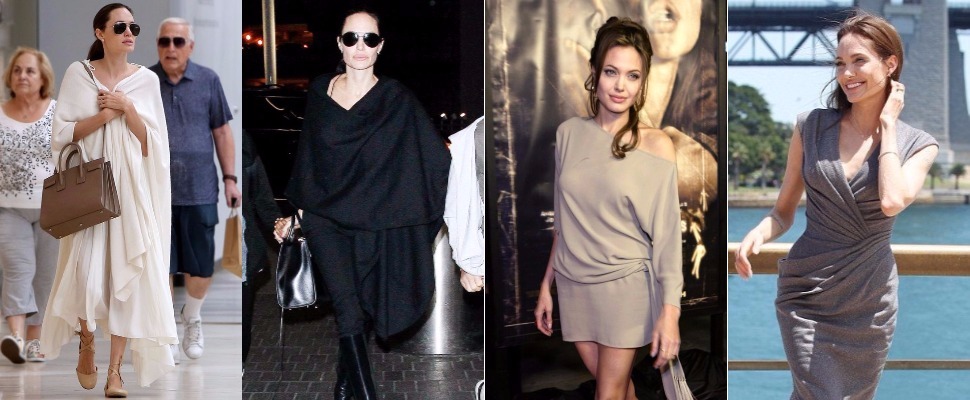 其實Jolie本來就已經夠瘦了,所以她不需要穿黑色來顯瘦,他喜歡用不同質料的黑色服裝來搭配,讓穿著有層次感,不會像送行者;同時遵守上寬下窄的比例原則,穿寬褲上身就套斗篷。連同配件包包也清一色是黑色系,如此簡單的搭配卻永遠不退流行。