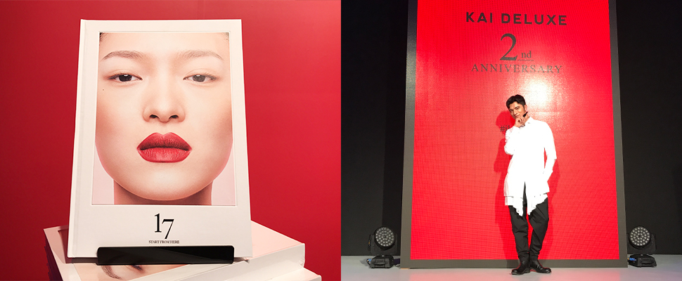 今天記者會除了是彩妝書《17》攝影藝術展之外,也是品牌兩週年!小凱老師非常用心打造台灣原創的美妝品牌,融入很多自己的心血、理想和精神,希望能在國際視野中展現時尚品味風情與極致美學,當然除了歡慶品牌兩週年之餘,更希望能讓所有人透過他的彩妝品,展現與眾不同的魅力。