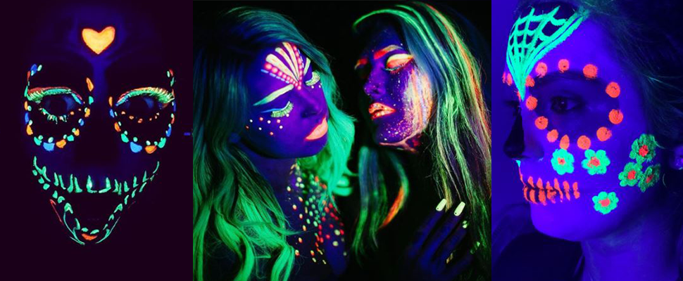 潮人們一致推薦paintertainment(點我)的霓虹顏料,台灣各大美術社也有販售人體彩繪專用夜光顏料。使用方式沒啥技巧可言,唯一要注意就是畫上顏料之前記得做好隔離打底,避免顏料直接接觸皮膚,另一個重點就是,畫完顏料後續就別用蜜粉畫刷子定妝,除了可能影響亮度,也怕定妝過程讓顏料糊成一片。