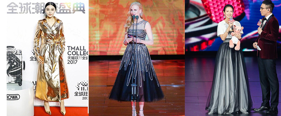 除了表演嘉賓名單華麗,一個個上場為馬雲「拉生意」的大明星都是讓粉絲仰望的男神女神,「范爺」范冰冰開場前一套金色禮服氣勢萬千;國際巨星章子怡也現身雙11,手拎一只絨毛娃娃和粉絲分享自己等下準備替老公汪峰多搶幾件「內褲」(三角、四角還是小丁?),這樣的畫面還真的只有這裡看的到~