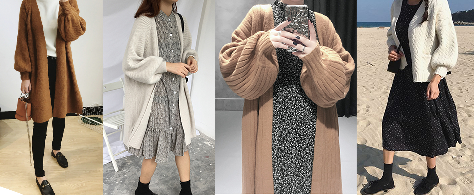 燈籠袖設計讓針織外套多了一分可愛,也讓原本稍嫌樸素的造型更有設計感,先從每年冬天都要鬼打牆的白、灰色系針織外套看起,無論搭上A字裙、還是甜美碎花洋裝、甚至率性一點的反摺牛仔褲,都讓原本單調又千篇一律的穿搭多了個性。