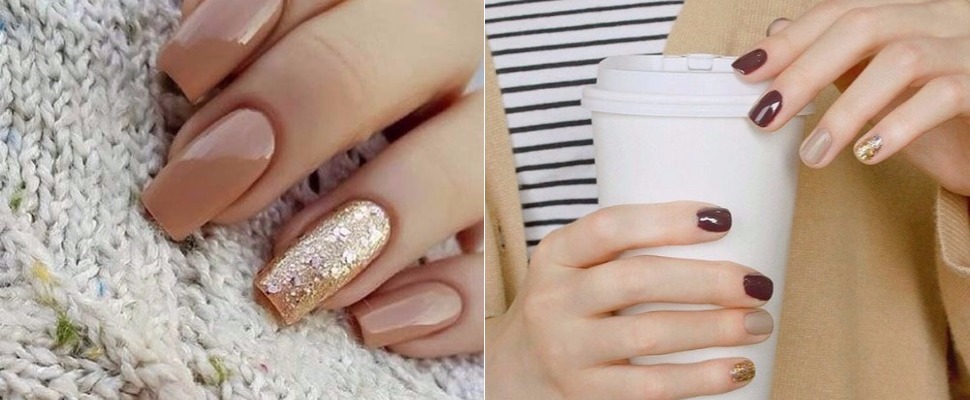 也可以在甲彩中加入亮片並用不同質感的甲彩去混搭(金屬感、霧面感等),做出來的效果就會很有變化不單調。咖啡及楓紅色系的指彩是最百搭的,不管搭什麼衣服都不突兀,還可以當很好的陪襯。