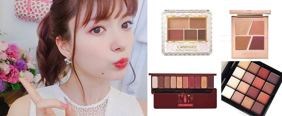 一推出就成功引起日本妹瘋搶的#紅玉楓赤,化在眼皮上顏色如同紅茶一般,看似濃郁的色彩中帶著一抹澄澈的透明感,用手指就能快速推勻上妝,當然用刷子細細暈染、堆疊,創造出的妝感也更為精緻,就像這位日本妹無辜感破表的眼妝,女孩看到都忍不住心動。另外彩盤中深淺不同的大地色還可做為眉粉與修容使用,多用塗高CP值,不收對不起自己~