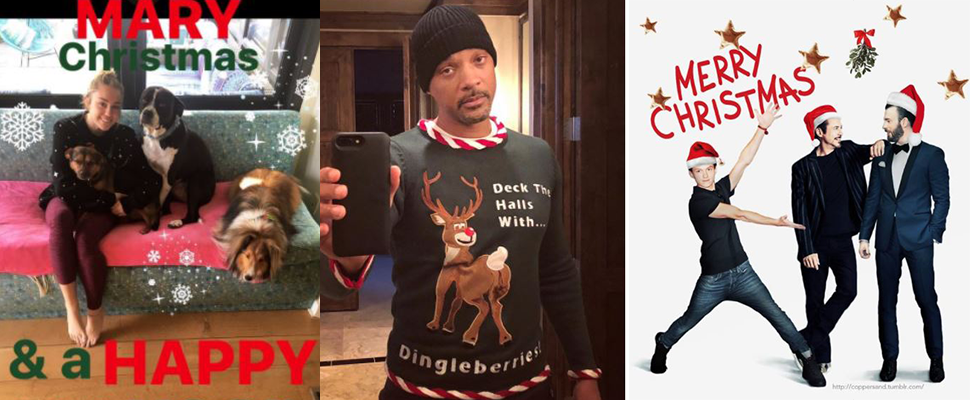 這波被好萊塢名人帶起的醜毛衣風潮一路延燒至今,麥莉希拉身上的聖誕老人擺出前陣子最火的「dab」姿勢很跟的上潮流。