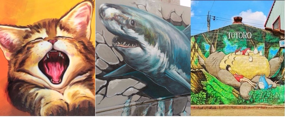 以民雄舊有地名「打貓」為主題營造出以貓為主的彩繪牆,讓這個純樸的農業小村發展成可愛的彩繪村!在老舊的平房矮屋畫上的鮮艷色彩的街景,讓人不禁覺得每幅畫都太~萌了!當街上沒有吵鬧的人潮只有貓咪時,真的讓人以為穿越到另一個貓世界呢~