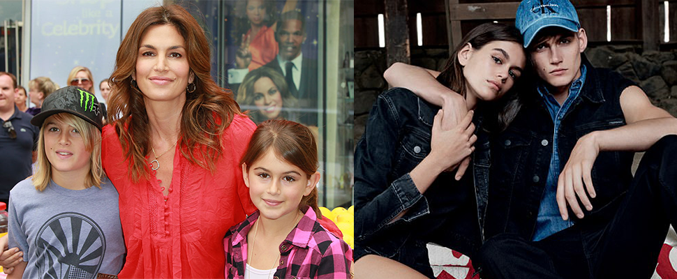 在帥爸美媽的神基因加持下,Presley及Kaia的照片自然是養眼又美觀,雖然穿起丹寧裝不如老媽辛蒂克勞馥的風情萬種,但一副當季的厭世時尚臭臉,兄妹倆也算緊緊抓住了時代的脈動。