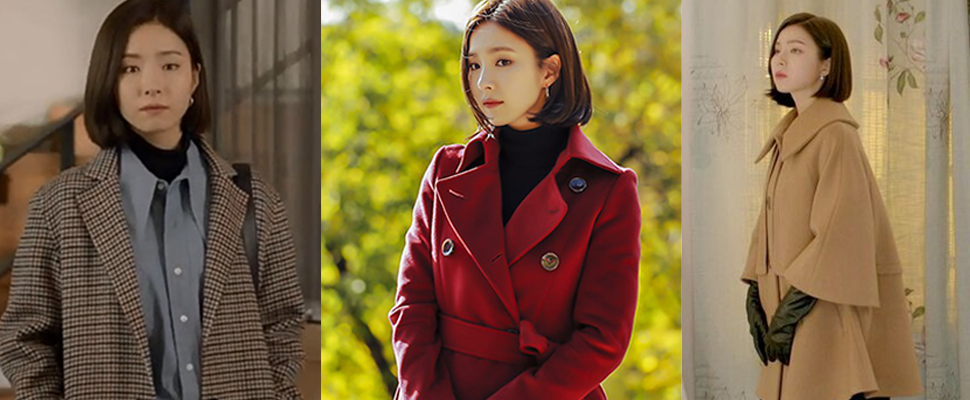 作為優雅小女人,申世景劇中的大衣款式幾乎都避開了俐落直筒剪裁,船塢藍立領大衣有著A字剪裁,配上胸前一整排蝴蝶結裝飾,跳脫以往大衣一排扣的刻板印象。出眾設計作為洋裝單穿也不無聊,劇中申世景內搭黑絲襪呼應胸口蝴蝶結、貴氣大方,難怪讓歐巴的視線離不開她!