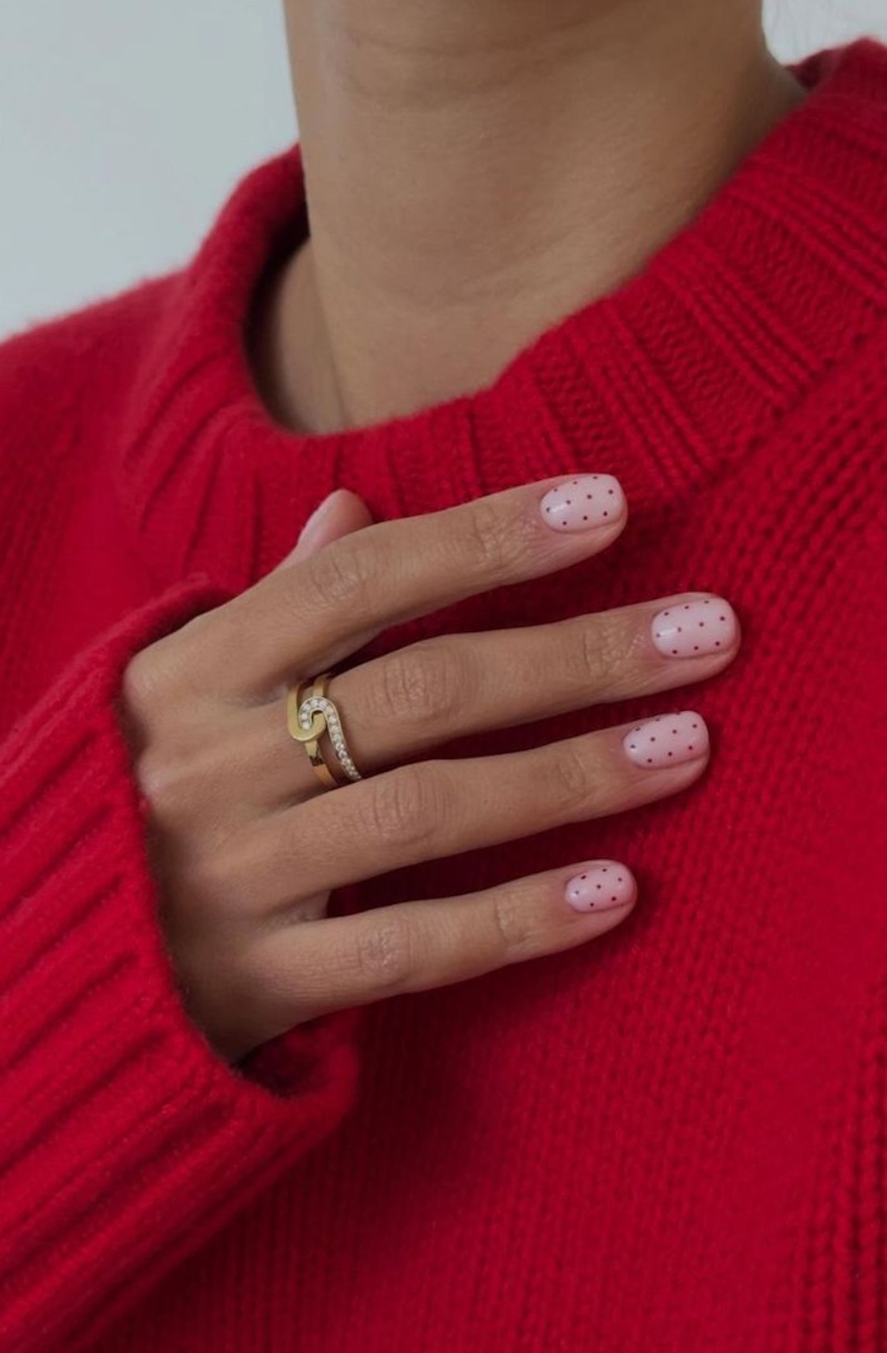 在 2026 春季的美甲設計中,復古波點元素被重新運用,但風格會變得更加簡約、細緻。本季常見的是直徑小於 1mm 的微小波點,與過去常見的大圓點圖案相比,在視覺上會顯得更加輕盈,也更容易與日常穿搭搭配。細緻的波點能在維持簡潔感的同時,為甲面增添細節變化,即使是簡單的素色設計,也能呈現出更精緻、更有層次的效果。