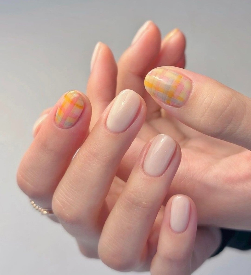 ▲2026 春季的格紋美甲改用較為輕透的設計來呈現。圖片來源:Pinterest