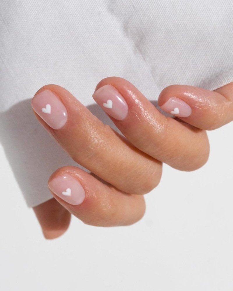 2026 的愛心美甲設計以簡約風格為主,捨棄了巨大、飽滿的圖案,改以小巧的愛心作為點綴,展現出俐落的指彩風格。在乾淨、柔和的低飽和底色上加入一個小細節,就能為指彩增添精緻度與變化感;而圖案則多會放在甲面中央或是接近指緣的位置,既不會破壞整體的簡潔感,也能讓愛心元素自然的成為亮點,為手部造型注入浪漫氛圍。